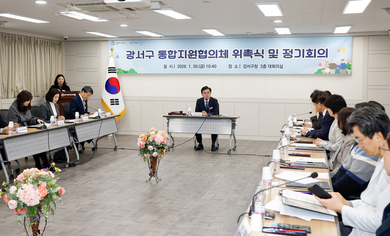 [강서구 세계타임즈=이장성 기자] 서울 강서구(구청장 진교훈)가 30일(금) 구청 대회의실에서 「통합지원협의체 위촉식 및 정기회의」를 개최했다.