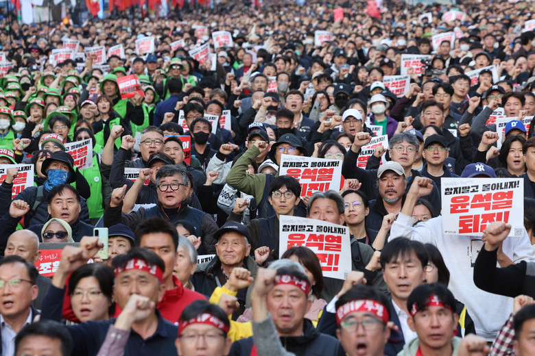 이 사태를 책임지고 사과해야 할 조지호 경찰청장은 한 의원의 부상에 대해 경찰 때문인지 확인이 안 된다는 식의 황당무계한 발언을 했다며 경찰은 윤석열 정권의 하수인으로 전락할 것인지, 민중의 지팡이가 될 것인지 결정하라고 요구했다.기자회견문에는 5개 야당 소속 63명의 의원이 이름을 올렸다.이들은 기자회견 직후 조지호 청장과 50분간 면담했다.조 청장은 의원들의 공식 사과 요구에 절제된 공권력의 행사였다는 기존 입장을 반복했다고 참석자들이 면담 후 기자들과 만나 전했다.집회 당일 진압복을 입은 기동대원을 다수 배치한 배경에 대해서는 사전 정보에 의해 폭력 사태를 예방하기 위한 것이라고 설명했다고 한다.민주당 이용우 의원은 경찰청장의 공식 사과와 책임자 처벌, 재발 방지 약속을 요구했는데 조 청장의 사과 수용은 없었다. 매우 유감스럽다며 사후적으로 국회에서 취할 수 있는 조치를 강구하겠다고 말했다.한창민 의원은 청장이 잘못된 첩보와 편견으로 물리적 충돌을 일으킨 데 대한 책임 있는 사과가 있어야 하는데 변명으로 일관해 강한 유감이라고 했다.