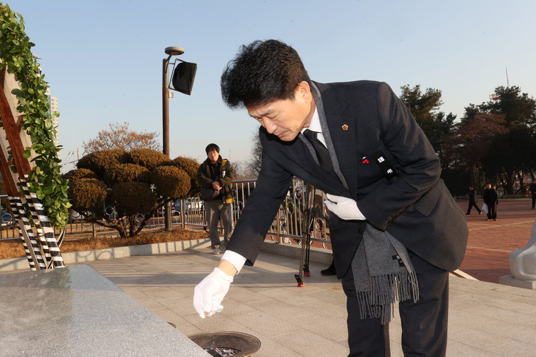 이날 참배에는 이 의장을 비롯해 이상식 정책복지위원장, 최정훈 행정문화위원장, 김꽃임 산업경제위원장, 이태훈 건설환경소방위원장, 이정범 교육위원장과 김현문‧박지헌‧이동우‧박재주‧조성태‧이옥규‧노금식‧유상용‧박병천‧박봉순 의원, 사무처 간부 직원들이 참석했다.