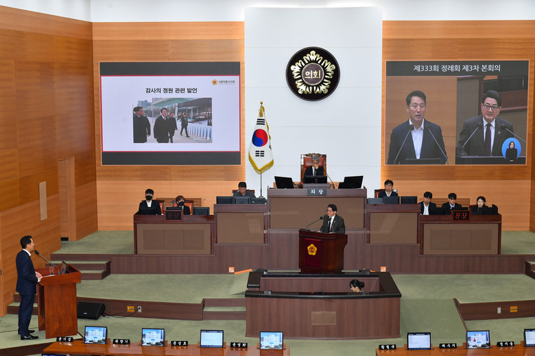 홍국표 의원은 이날 시정질문에서 김민석 총리의 과거 행적을 집중 조명했다. 홍 의원은 “김민석 총리는 2002년 청계천 복원을 뜬구름 잡기라며 반대했고 강북 뉴타운도 반대했다”며, “김 총리가 과거의 실수도 잊고 또다시 같은 방식으로 서울의 미래를 가로막아서는 안된다”고 비판했다.