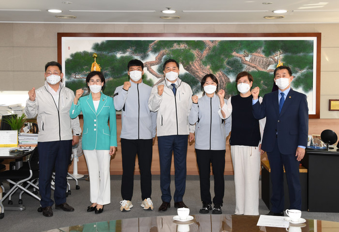 이날 선수단 격려에 김용집 의장, 조석호 부의장, 정순애 부의장, 김나윤 교육문화위원장을 비롯해 이평형 광주광역시체육회 사무처장, 윤동현 선수(레슬링, 광주체고), 김주형 선수(배드민턴, 광주체고)가 참석했다.