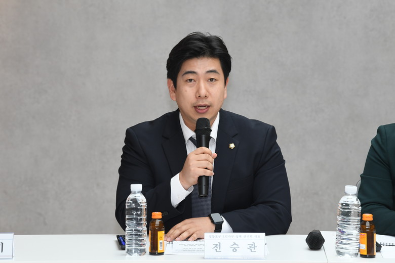 전승관 대표의원은 "1인 가구가 급증함에 따라 맞춤형 정책 마련이 시급하다고 판단해 이번 연구회를 구성했다"며 "한국갤럽과 협력해 FGI와 정책토론회 등을 진행하며, 실제 1인 가구가 겪는 어려움과 정책 수요를 면밀히 파악했다"고 밝혔다.