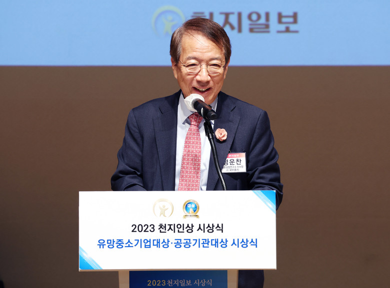 이상면 천지일보 대표이사는 인사말을 통해 “시상을 받는 분들은 코로나라는 어려운 기간을 지나오면서 사회적으로나 국가적으로나 소금과 빛과 같이 꼭 필요한 일을 해오신 분들”이라고 격려하면서 “공공의 이익, 책임과 의무를 다하고 가치를 실현하는 분들이 있기에 경제가 돌고 나라가 움직여진다. 중소기업이 없으면 대기업이 있을 수 없는데 이번 기회에 이를 한번 생각봤으면 한다”고 밝혔다.