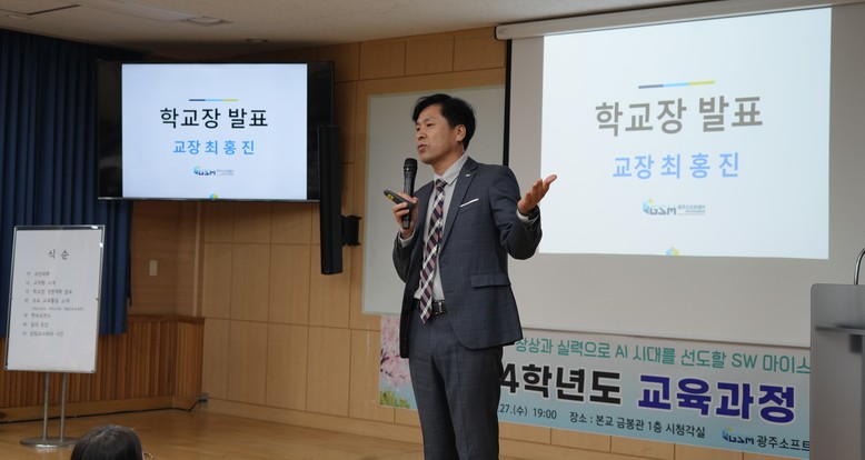 [광주 세계타임즈=손권일 기자] 광주소프트웨어마이스터고등학교(이하 광주소마고)가 지난 27일 2024학년도 학교 교육과정 설명회를 개최했다.