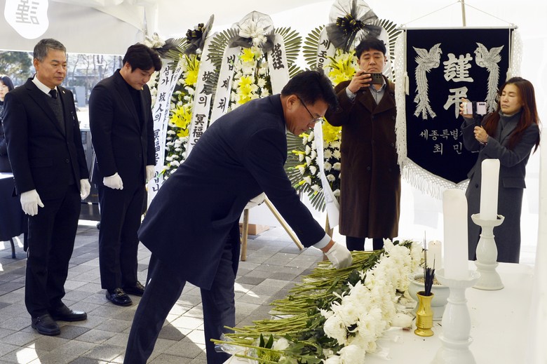 충청광역연합의회는 지난달 원 구성 이후 2일 새해 첫 공식 일정으로 세종시청과 세종시교육청에 마련된 합동분향소를 방문하여 무안공항 제주항공 여객기 참사 희생자들을 참배했다.