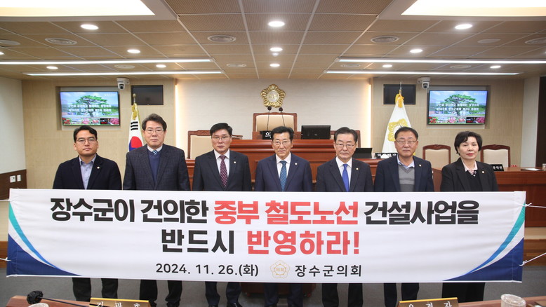장수군의회 의원 일동은 결의안을 통해 ▲정부는 제5차 국가철도망 구축계획에 장수군이 건의한 중부 철도노선 건설 사업을 반드시 반영할 것 ▲정부는 낙후지역 철도노선 확충으로 수도권 집중과 지방소멸 위기 및 국가 균형발전에 최선의 대책을 강구 할 것을 요구했다.