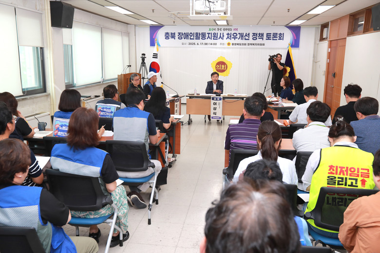 [충북 세계타임즈=이현진 기자] 충북도의회 정책복지위원회(위원장 이상식)는 17일 도의회 회의실에서 ‘충북 장애인활동지원사 처우개선 정책토론회’를 개최해 열악한 노동환경에 놓인 활동지원사의 실태를 진단하고 처우개선 방안을 모색했다.