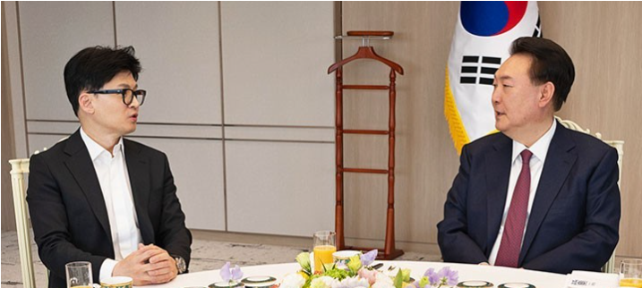[세계타임즈 = 이채봉 기자] 윤석열 대통령이 한동훈 전 국민의힘 비상대책위원장을 비롯한 한동훈 비대위 소속 인사들에 오찬 회동을 제안한 것으로 확인됐다.한 전 위원장이 불참 의사를 밝히면서 오찬 성사 여부가 불투명한 상태다.국민의힘 정희용 수석대변인은 언론에 공지를 통해 윤재옥 당 대표 권한대행은 지난 19일 대통령실로부터 한동훈 비대위와의 오찬을 제안받은 바 있지만, 일정은 확정되지 않았다고 밝혔다.여권 관계자들에 따르면 대통령실에서 제안한 비대위 오찬 날짜는 오는 22일이었다고 한다.대통령실은 이관섭 대통령 비서실장을 통해 지난 19일 한 전 위원장에게도 직접 연락해 오찬을 제안한 것으로 알려졌다. 대통령실 고위 관계자는 통화에서 대통령이 총선을 치렀던 당 비대위와 선거 후 만나는 것은 당연한 일이라고 말했다.한 전 위원장은 지금은 건강상 이유로 참석하기 어렵다며 정중히 거절 의사를 밝힌 것으로 전해졌다.이에 따라 당분간은 윤 대통령과 한동훈 비대위 인사들의 오찬 회동이 성사되기는 어렵게 됐다.대통령실도 건강상 이유로 참석하기 어렵다는 뜻을 밝힌 한 전 위원장을 제외한 채 만나는 방식을 선호하지는 않는 것으로 전해졌다.대통령실 고위 관계자는 한 위원장 건강이 회복되고 만나면 된다며 한 위원장은 꼭 모셔야 한다고 말했다.한 전 위원장은 패배로 결론 난 4·10 총선 다음날 국민의 선택을 받기에 부족했던 우리 당을 대표해 국민께 사과드린다며 비대위원장직에서 사퇴했다. 박은식·윤도현·장서정 비대위원 등도 모두 함께 비대위원직에서 물러났다.