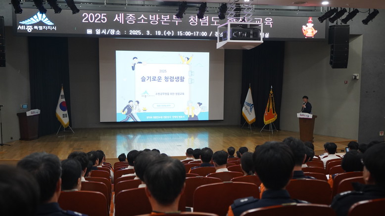 [세종 세계타임즈=이채봉 기자] 세종소방본부(본부장 박태원)가 19일 시청 4층 여민실에서 소방본부와 소방서 직원 80명을 대상으로 반부패 청렴 교육을 했다.