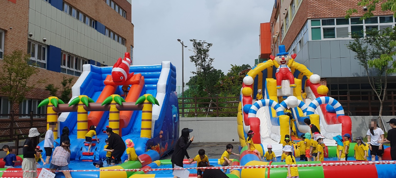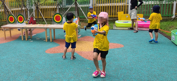 이번 물놀이 행사는 원내에 이동식 대형 슬라이드 수영장과 물총놀이(과녘맞추기, 목표물맞추기), 낚시놀이, 쉬어가는 코너로 팝콘 튀기기 등의 영역을 설치하고 유아들이 즐겁게 참여하여 무더위를 이기고 건강한 여름을 지낼 수 있도록 계획되었다.