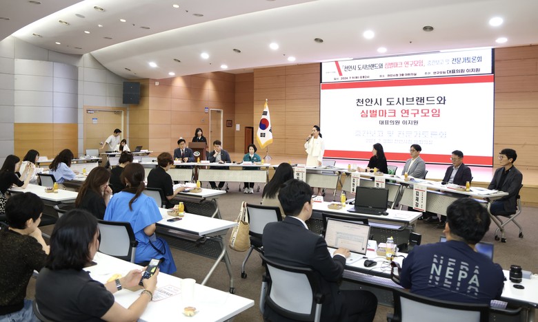 [천안시 세계타임즈=백택기 기자] 천안시의회 「천안시 도시브랜드와 심벌마크 연구모임」(대표의원 이지원)이 정책연구활동 중간보고 및 전문가 토론회를 9일 천안시청 대회의실에서 개최했다.
