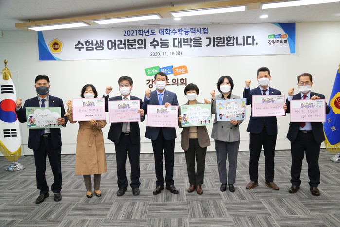 도의원들은 그동안 최선을 다한 수험생들이 대학수학능력시험을 잘 보길 기원하면서 “수능 잘 보고 꽃길만 걷자”, “풀어도 정답! 찍어도 정답”, “수험생분들의 선전을 강원도의회가 응원합니다!”등 다양한 응원메시지를 작성하였다.