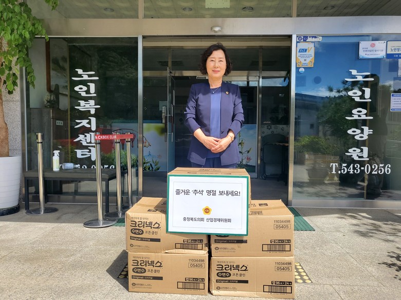 [충북 세계타임즈=이현진 기자] 충북도의회 산업경제위원회(위원장 박경숙)는 9월 2일 민족의 명절인 추석을 맞아 보은군에 위치한 소망노인요양원을 방문해 따뜻한 마음을 담은 위문품을 전달하고, 시설 관계자와 종사자의 노고를 격려했다.
