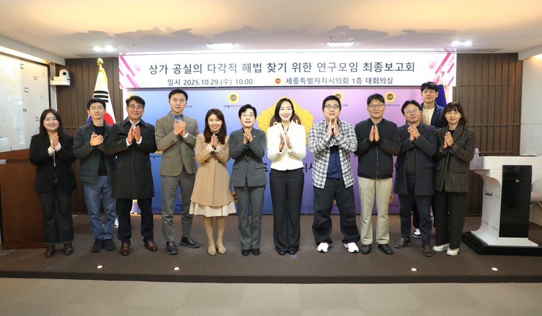 [세종 세계타임즈=이채봉 기자] 세종특별자치시의회(의장 임채성) ‘상가 공실의 다각적 해법 찾기 위한 연구모임’(대표의원 김효숙, 이하 연구모임)은 29일 시의회 대회의실에서 최종보고회를 개최했다.