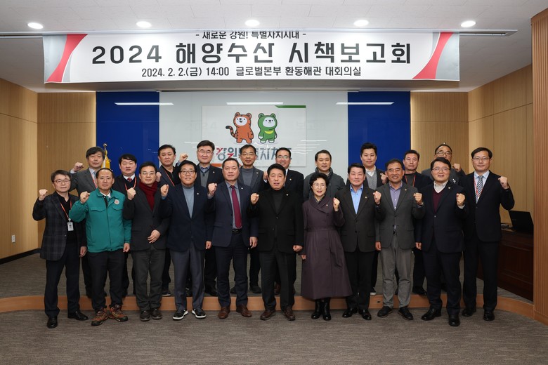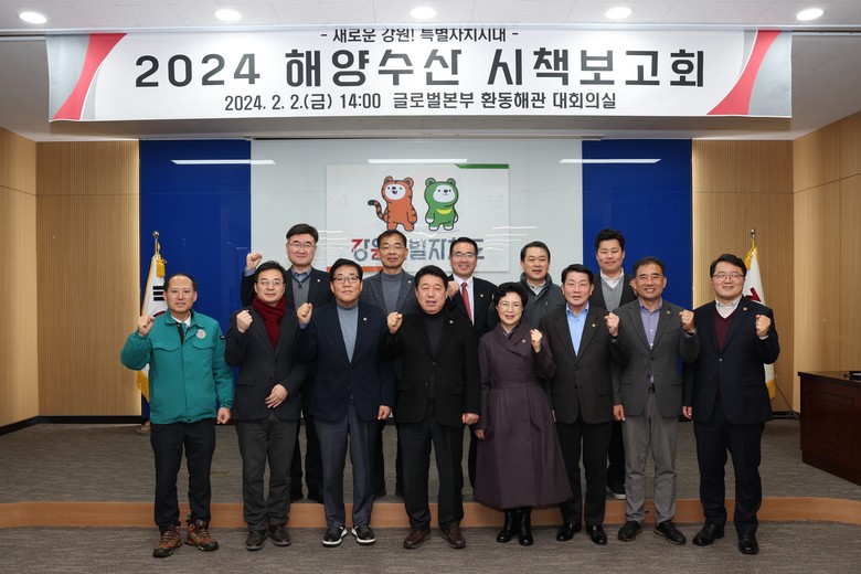[강원도 세계타임즈=김민석 기자] 강원특별자치도의회 권혁열 의장을 비롯한 동해안권 시‧군의원 15명은 강원특별자치도의 2024 해양‧수산분야 주요 정책과제와 주요시책을 점검하고 주요 현안사항 개선방안을 모색하는 ‘2024 해양수산시책 보고회(24.2.2.(금), 제2청사 환동해관)’에 참석하였다.