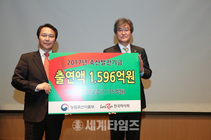 [세계타임즈 김장수 기자] 한국마사회는 지난 4월 5일, 과천에 소재한 렛츠런파크 서울 본관 문화공감홀에서 축산발전기금 출연 전달식을 가졌다.