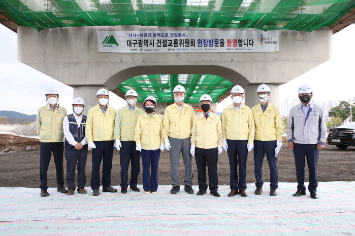 이날 현장을 방문한 건설교통위원들은 대구시 건설본부 관계자로부터 다사~왜관 간 광역도로 건설사업의 추진현황과 향후 계획에 대해 보고받고 현장을 시찰했다.