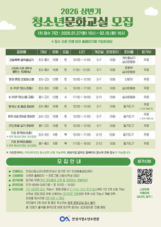 안성시, 2026년 상반기 ‘청소년 문화교실’ 수강생 모집