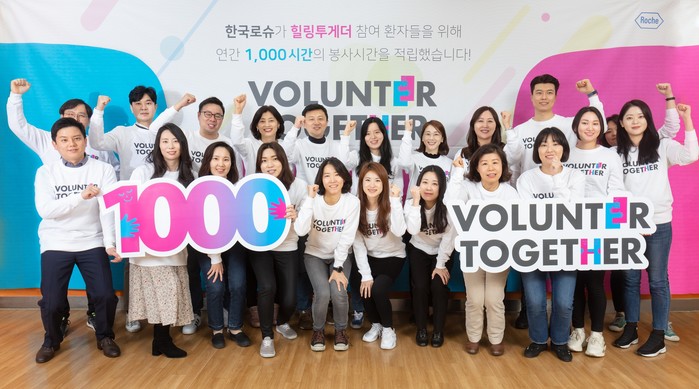 올해 초 출범한 ‘볼룬티어 투게더’는 임직원들이 연간 1000 시간의 봉사활동에 참여하면 회사에서 1000만 원을 적립해 암 및 희귀난치성 질환 환자들의 문화예술 동아리 활동을 지원하는 한국로슈의 사회공헌 프로그램 ‘힐링투게더(Healing Together)’에 추가로 기부하는 사내 봉사 프로그램이다.