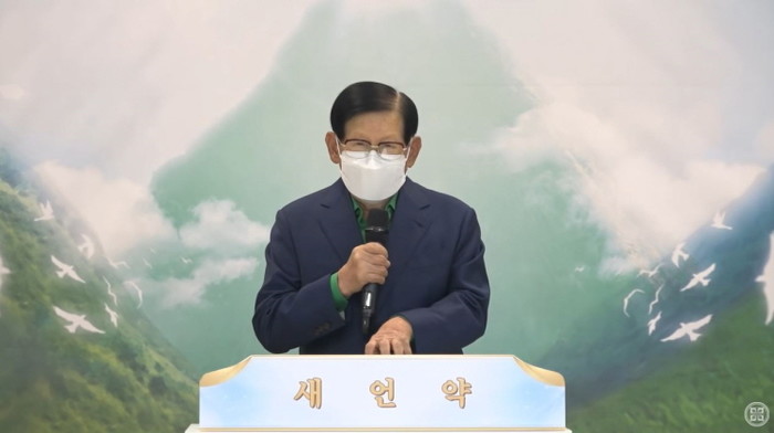 이어 이 총회장은 마태 24장의 구절의 뜻을 계시록 13장과 연계해 하나하나 풀어주며 기성교회에서 해당 성경의 장을 세상의 전쟁으로 해석하는 행태를 비판했다.