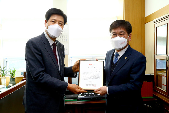[강원도=세계타임즈 김민석 기자] 강원도의회 경제건설위원회 김형원 위원장(동해2)이 10일 중소기업중앙회(회장 김기문)로부터 감사패를 수상했다.