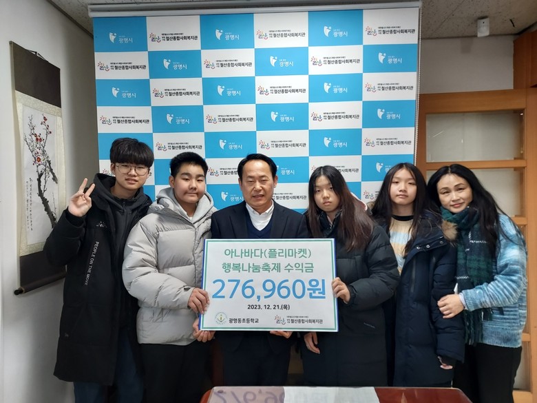 교육공동체가 참여한 이번 행사의 기증품 및 판매수익금은 철산종합사회복지관에 기부했다. 이번 플리마켓 행복나눔 축제를 통해 학생들은 사고파는 작은 시장경제를 체험하고 자신에게 필요 없는 물건은 다른 사람들에게 나누고, 내게 필요한 물건은 알뜰한 가격에 구매함으로써 환경을 살리는 것은 물론이고, 우리 지역의 필요한 곳에 기부하면서 주변을 돌아보는 따뜻한 나눔을 배울 기회가 되었다.