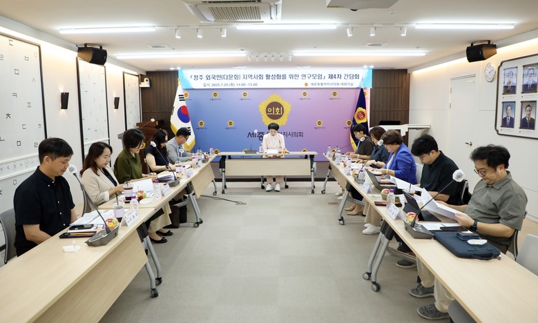 [세종 세계타임즈=이채봉 기자] 세종특별자치시의회(의장 임채성)는 29일 오후 2시 의회청사 1층 대회의실에서 ‘정주 외국인(다문화) 지역사회 활성화를 위한 연구모임(대표의원 홍나영)’ 제4차 간담회를 개최했다.