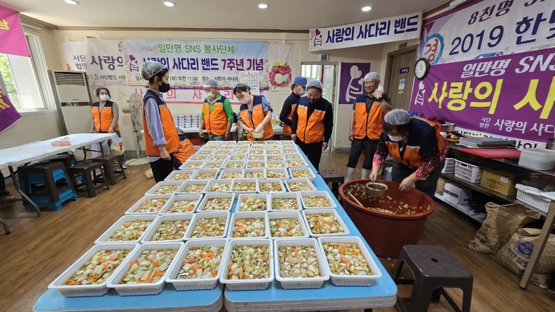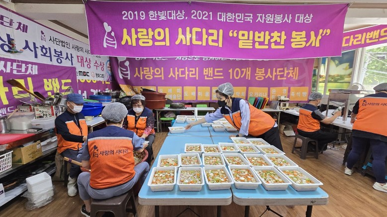 [대전 세계타임즈=이채봉 기자] 지방자치단체의 보조금 지원 없이 8년째 다양한 봉사를 실천하고 있는 사랑의 사다리 밴드(리더 이정제) 봉사단체는 지난 3일 맛있는 밑반찬을 만들어서 대덕구 소외계층 80가정에 따뜻한 사랑을 실천하였다.