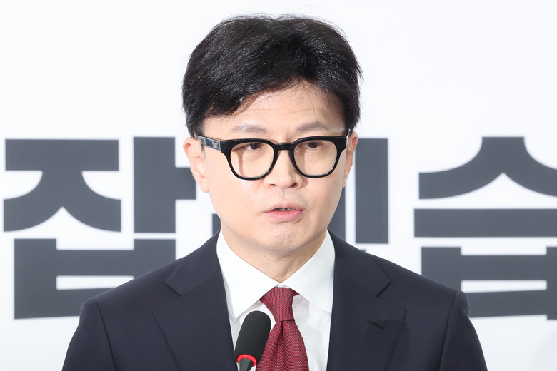 국민의힘 한동훈 대표가 12일 오전 서울 여의도 국회에서 윤석열 대통령 탄핵과 관련한 긴급 기자회견을 하고 있다. 2024.12.12