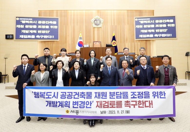 김 의원은 “세종시의 어려운 재정 여건 상황에 최근 행정중심복합도시에서 조성되는 공공건축물 조성을 위한 재원의 50%를 세종시에 분담시키는 안이 논의되는 것이 우려된다”며 건의안 채택의 이유를 설명했다.