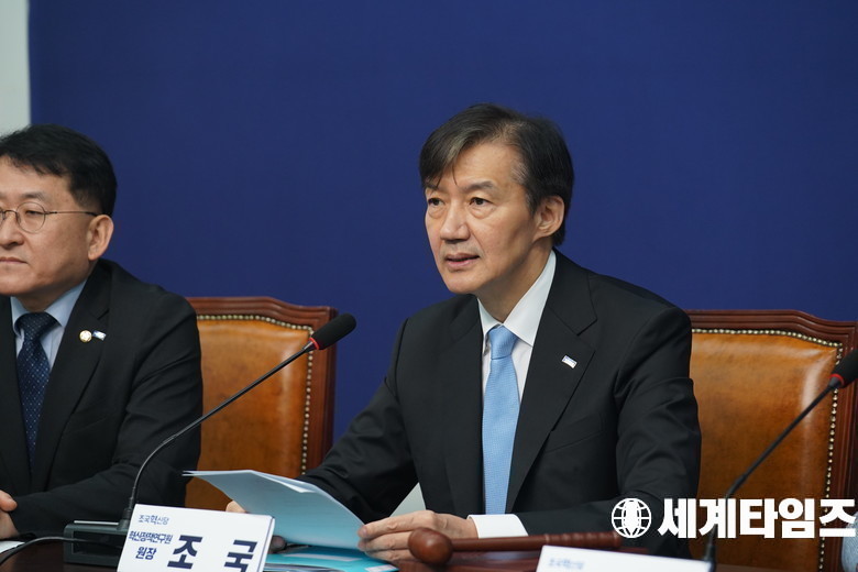 '조국' 조국혁신당 혁신정책연구원장이 1일 서울 여의도 국회에서 열린 최고위원회의에서 발언하고 있다.