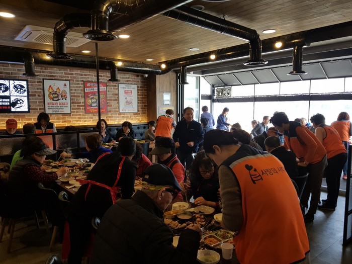 [세계타임즈 이장성 기자] 다양한 봉사를 꾸준히 하고 있는 대전시 SNS 봉사단체 사다리 밴드(리더 이정제)는 22일 오전11시, 달콤한 삼겹살 상대점에서 유성구 시각장애인협회(회장 김태용)의 50명 회원들의 점심시간에 삼겹살 봉사로 우리 사회의 따뜻한 사랑을 전달하였다.