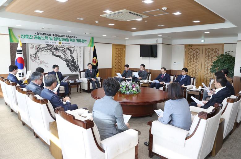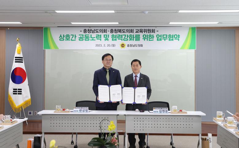 이날 협약식은 양 도의회 교육위원장을 비롯해 교육위원, 사무처 관계자 등 20여 명이 참석한 가운데 글로벌 미래인재 육성과 충청권 미래 100년 발전 역량 마련을 목적으로 진행됐다.