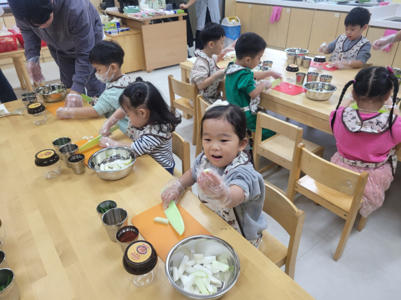 이번 체험은 11일에 아이들은 직접 심고 키운 무를 수확하고 13일에는 학부모회와 함께 깍두기를 담그는 것으로 진행되었으며, “딸기잼도 넣어요!”, “과자도 넣어서 맛있게 만들어요!” 등 아이들의 웃음꽃이 끊이질 않았다.