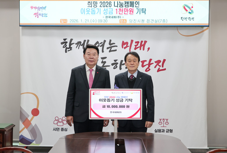 오성환 당진시장은 “지역의 대표적인 기업인 한국내화가 지속적으로 지역사회 나눔에 동참해 주셔서 깊이 감사드린다”며 “기탁해 주신 소중한 성금은 도움이 절실한 이웃들에게 정성과 함께 전달하겠다”고 말했다.
