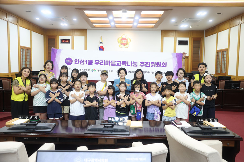 [대구 세계타임즈=한윤석 기자] 대구시의회는 8월 7일(수), 안심1동 우리마을교육나눔위원회 학생 20명을 시의회로 초대해 의사당 본회의장에서 의회의 역할과 기능을 설명하고, 본회의장의 시설을 체험하는 시간을 가졌다.