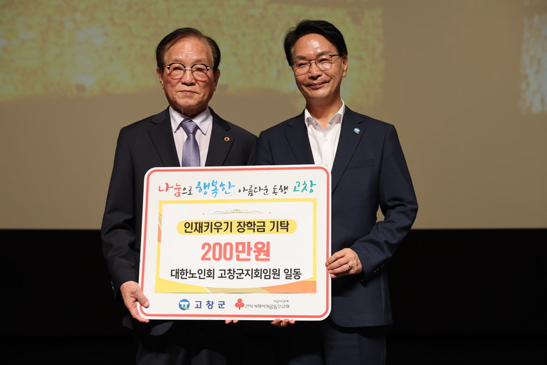 (사)대한노인회 고창군지회에서는 지역 인재 양성을 위한 장학금 200만원을 고창군 장학재단에 전달했다. 고창청춘대학에서도 불우이웃돕기 성금 100만 원을 기탁하며, 지역사회를 위한 어르신들의 따뜻한 정을 나누는 뜻깊은 시간을 마련했다.