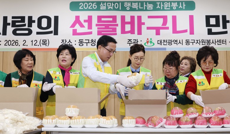 [동구 세계타임즈=이채봉 기자] 대전 동구(구청장 박희조)는 12일 동구청 후생관에서 동구자원봉사센터 주관으로 설 명절 맞이 ‘사랑의 선물바구니’ 제작 행사를 개최했다고 밝혔다.