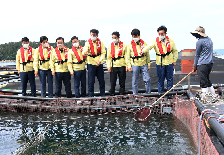 [경남 세계타임즈=최성룡 기자] 경상남도의회 김진부 의장, 최학범 제1부의장, 강용범 제2부의장, 신종철 의회운영위원장, 백수명 농해양수산부위원장, 강성중 의원(통영1),김태규 의원(통영2)은 8일 통영시 산양읍 일대 가두리 양식장을 방문하여 고수온·적조 대책 주진 상황을 점검하였다.