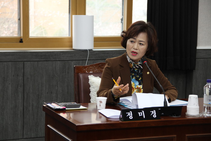 정미경 의원은 농기계 임대사업과 관련하여 사용방법 교육 및 보험 등 시민들이 안전하게 이용할 수 있도록 당부하였으며, 태백시 지역정책과 발전과정에서 남성과 여성의 평등한 참여 등을 실현하기 위하여 태백시 여성친화도시 조성에 관한 조례안을 대표 발의 하였다.