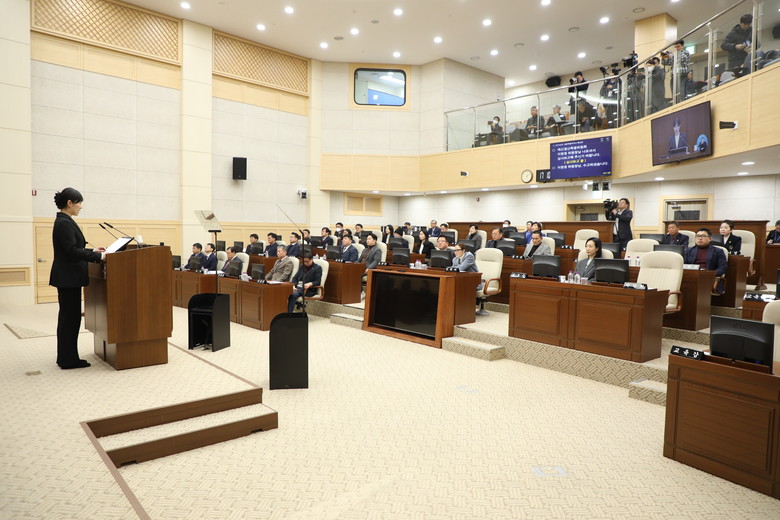 임채성 의장은 이날 한 해 회기를 마무리하는 폐회사에서 “2025년도 예산이 뒤늦게 확정되면서 시민 여러분께 큰 우려를 끼쳐드렸다”며, “예산 확정이 지연된 과정은 의회와 집행부가 예산을 보다 효율적으로 활용하기 위해 심도 있는 협의와 토론을 진행한 결과임을 너그러이 이해해 주시길 부탁드린다”고 말했다.