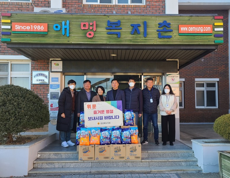 [경북 세계타임즈=한성국 기자] 경상북도의회는 설을 맞아 경북도의원 및 의회사무처 직원이 각 일정별로 관내 구호·자선기관을 찾아 명절의 따뜻한 정을 나눴다. 12일(목)은 경상북도의회를 대표해 김대일 의원(안동)이 안동시 북후면에 위치한 장애인 거주시설인 안동애명복지촌(원장 강금남)을 찾아 도의회에서 준비한 위문품을 전달하고 관계자들을 격려했다.