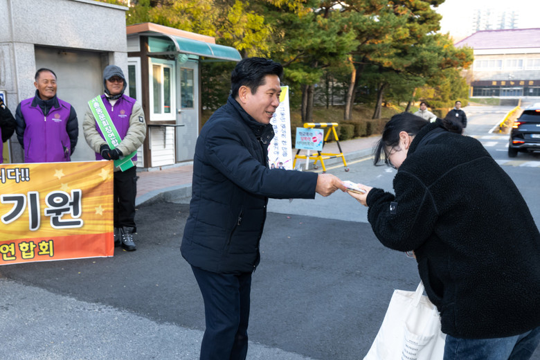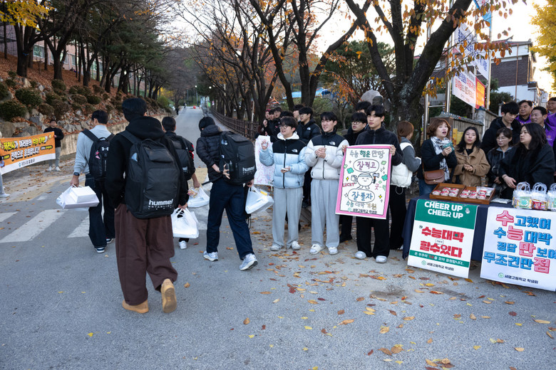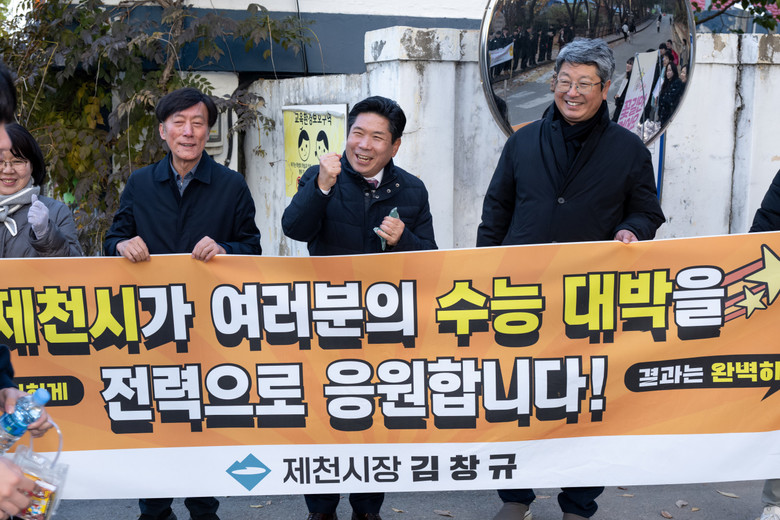 이날 김창규 제천시장, 박영기 제천시의회 의장, 시 관계 공무원들은 이른 아침부터 시험장을 돌며 수험생들에게 따뜻한 격려와 응원을 전했다. 특히 학부모와 지역 주민, 선·후배들이 함께 모여 수험생에게 박수와 응원의 메시지를 보내며 훈훈한 분위기를 더했다.