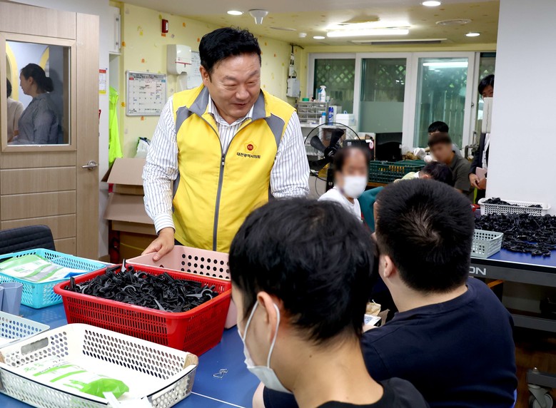 [대전 세계타임즈=이채봉 기자] 대전시의회 송인석 산업건설위원장(국민의힘, 동구1)은 추석 명절을 앞둔 25일 동구 소재 장애인 재활시설 탄탄재활작업장(원장 이미정)을 방문해 위문품을 전달했다.