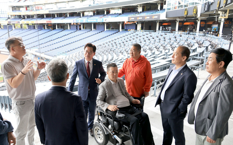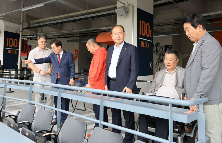 위원회는 최근 이슈가 되고 있는 대전한화생명볼파크를 방문해 시설 관계자들과 간담회를 진행하고 장애인 관람석과 내부통로, 출입구의 장애인 경사로 등을 살펴보며 관람객의 시설 이용에 있어 불편함이 없는지 세밀히 살펴봤다.