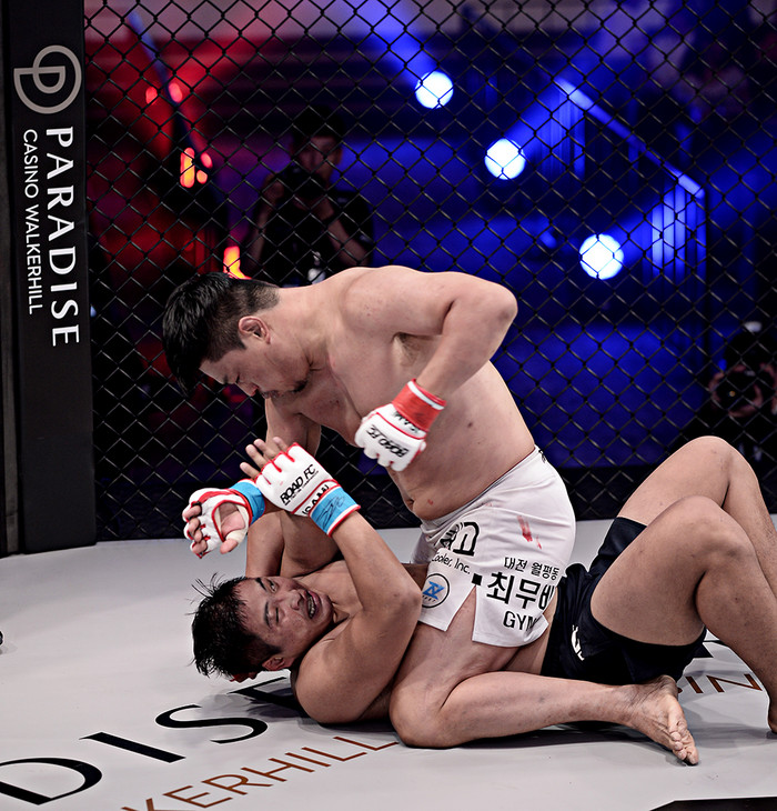 [세계타임즈 김인수 기자} 지난 18일 비스타 워커힐 서울에서 개최된 XIAOMI ROAD FC 049 IN PARADISE에서 ‘부산 중전차’ 최무배가 본인보다 26살 어린 마안딩을 상대로 1라운드 TKO승을 거뒀다.