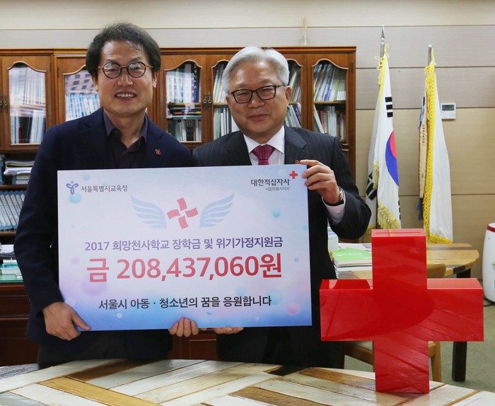 한편, 대한적십자사 서울특별시지사는 2017년 한 해 동안 서울시내 위기가정 아동‧청소년 192명을 위한 희망천사학교 장학금 및 위기가정지원금 2억 8백여 만원을 전달했다.