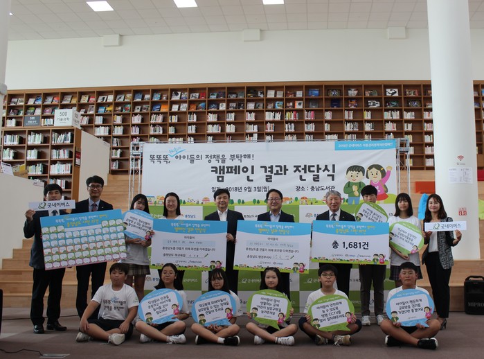 [충남=세계타임즈 이현진 기자] 3일(월), 국제구호개발 NGO 굿네이버스 충청본부(본부장 신범수), 충남북부지부(지부장 고승곤), 충남남부지부(지부장 조자영), 충남서부지부(지부장 김길수)는 굿네이버스 아동권리정책제안캠페인‘똑똑똑, 우리동네 아이들의 정책을 부탁해’를 통해 모은 충청남도 내 아동권리에 대한 의견을 남궁영 충청남도행정부지사와 신익현 충청남도부교육감에게 전달했다. 이번 굿네이버스 아동권리정책제안캠페인은 제7회 전국동시지방선거를 맞아 지난 5월 17일부터 한 달간 진행됐다.