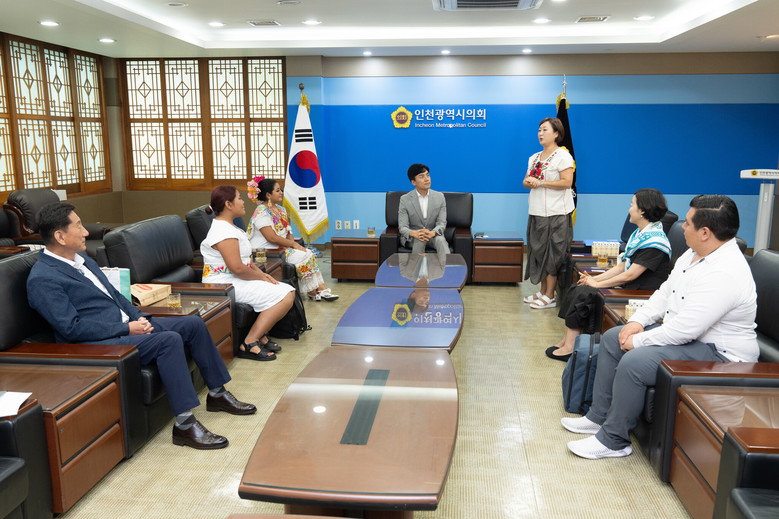 인천시의회는 최근 이봉락(국·미추홀3) 제1부의장과 이강구(국·연수5) 의원이 의회 대표로 의장접견실에서 멕시코청년리더협회 임원들을 만났다고 27일 밝혔다.