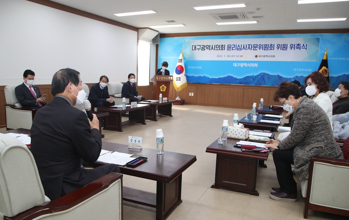 대구시의회는 학계, 법조계, 언론계, 시민사회로부터 관련분야에 공정성과 전문성을 갖춘 인사를 추천받아 총 7명으로 ‘대구광역시의회 윤리심사자문위원회’를 구성하고, 26일(수) 위촉식을 시행했다.